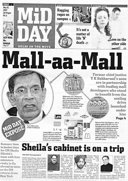 It was the worst news paper headline, ever in India, so far as judiciary was concerned. And it was dealt with in a worst manner by the Judiciary.On 20 September 2007 the journalists reporting the corrupt link between the sons of retired Chief Justice of India Y.K. Sabharwal with the builders who profited from his orders, were sentenced without even deciding that truth could be defence in contempt jurisdiction or not.